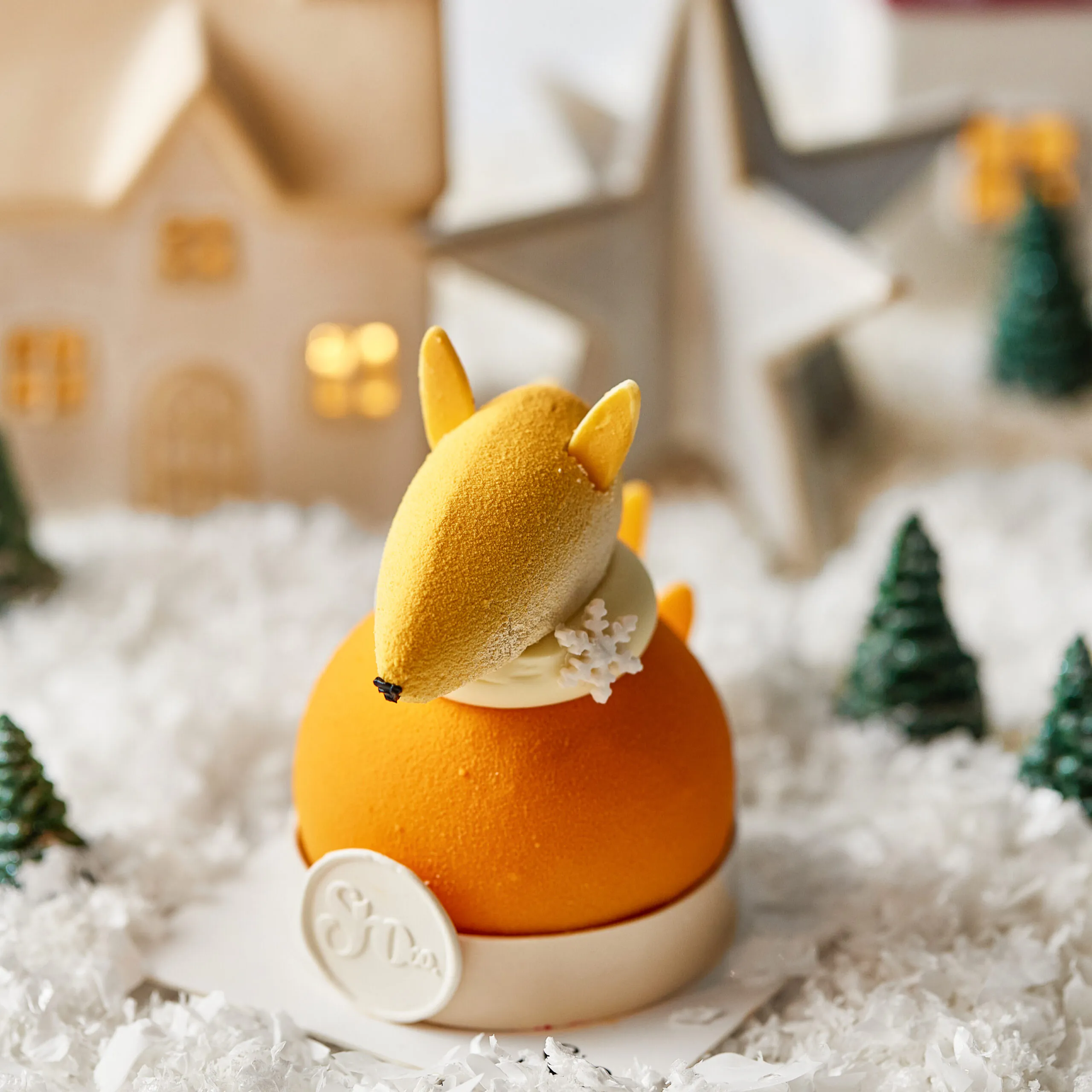 фундуковий бісквіт з корицею, мандаринове конфі з шматочками мандарину, мандариновий…