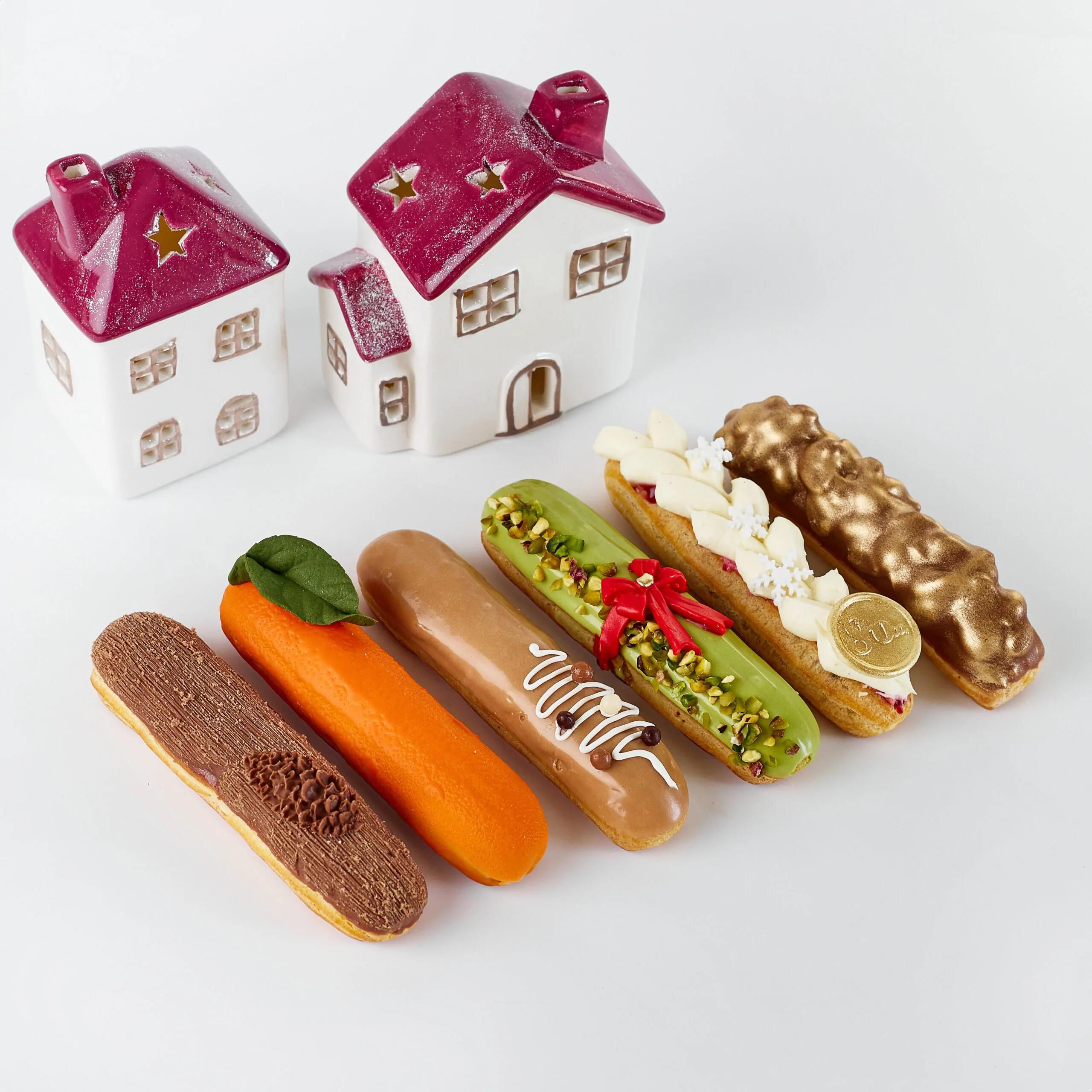 еклери: Ваніль, Мандарин, Baileys-Кава, Фісташка-Малина, Полуниця-Йогурт, Карамель